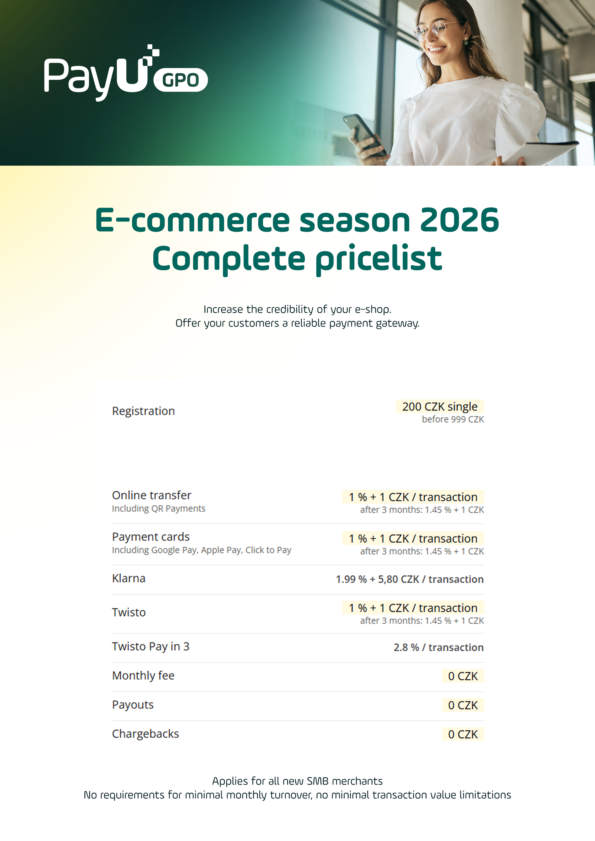 Do you have a monthly turnover of more than CZK 2,000,000? If so, ask for an individual offer!